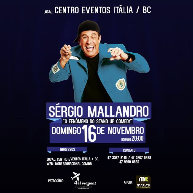 Ele está de volta!!! Quem esteve no Maria´s Itajaí Convention prestigiando este, que é o melhor Stand up de todos, pode conferir que ele é fera. Ele volta em Novembro pra nossa região, agora o show será no Cine Itália BC.